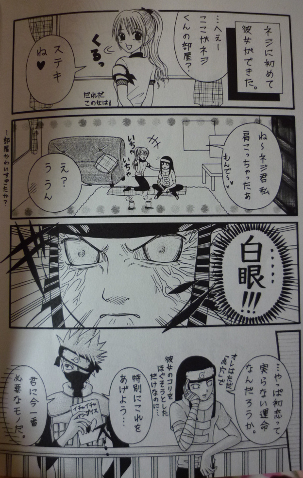 NARUTOを知らない方にはまったくわからない漫画だとは思いますが(知ってる方もたぶんネタが古すぎてよくわからないと思いますが)、まあ黒歴史のひとつとしてご紹介ってことでアップしてみました・・アクセスの少ない時間帯のうちに投稿します(過去記事になるようにすぐ更新しなくちゃ)。 今ちょっと寝ぼけてるので、正気になったら削除するかもしれません