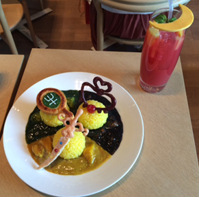 会場内のカフェに着いたらすでに列ができており、結果的に45分くらいは待ちました。が、周りの人が手にしているグッズやコスプレを見たり、2人でいろいろ話したりしていたら、なんだかあっという間に思えました